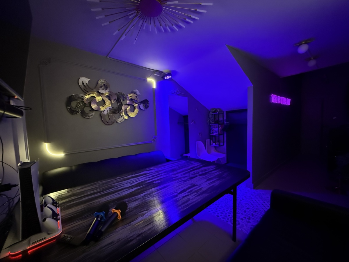 ✅Современная техника: Ледогенератор, микроволновка, чайник, холодильник, аудио система с двумя микрофонами, светомузыка, декоративные подсветки, телевизор, ноутбук.